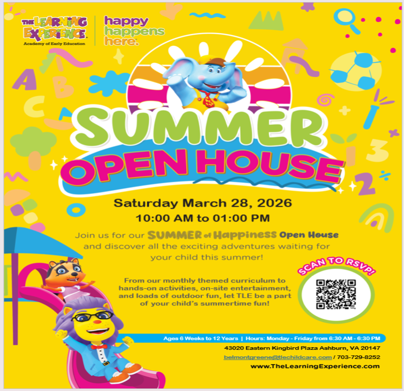 Get ready for a summer full of fun, learning, and adventure! From exciting monthly themes and hands-on activities to on-site entertainment and outdoor play, TLE has an amazing summer planned for your child. Join us for our Summer Open House on March 28th, 10:00 AM - 1:00 PM We look forward to welcoming your family!