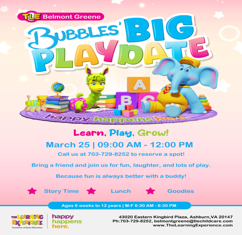 We’re excited to announce that The Learning Experience – Belmont Greene will be part of the Spring Fling at Ashburn Village Sports Pavilion on Saturday, March 21st at 11:00 AM! Bring the whole family for a fun-filled day featuring an egg hunt, petting zoo, food trucks, and more. We can’t wait to see you there!